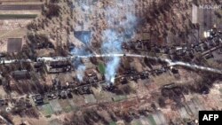 Imazhet satelitore të kompanisë 'Maxar Technologies' tregonin se autokolona ushtarake prej 64 kilometrash, në përbërje të së cilës kishte tankeve e artileri është shpërndarë dhe ridislokuar. Njësi të blinduara të saj janë parë në qytete pranë aeroportit Antonov. Një pjesë e automjeteve janë zhvendosur në pyje, njoftoi Maxar.