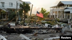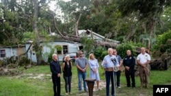 Duke folur pranë një kishe me çati të dëmtuar e një shtëpie gjysmë të shkatërruar nga një pemë, presidenti u zotua për mbështetje totale të qeverisë federale për banorët e Floridës.